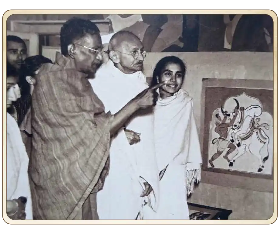 Nandalal Bose on the dictation of Mahatma Gandhi had put an exhibition of art and craft during the Lucknow Congress in 1936. His association with Gandhi can be further marked in his iconic linocut that commemorated Gandhi’s Dandi March.