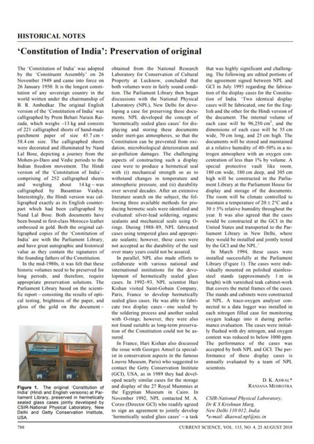 Within a vault-like room in the Library of the Parliament of India in New Delhi sit helium-filled cases - 30x21x9 inches in size. The temperature is fixed at 20°C (+/- 2°C) and a 30°C (+/- 5%) relative humidity is maintained throughout the year. Within the nitrogen-laden, hermetically sealed case are the 251-page bound manuscripts.