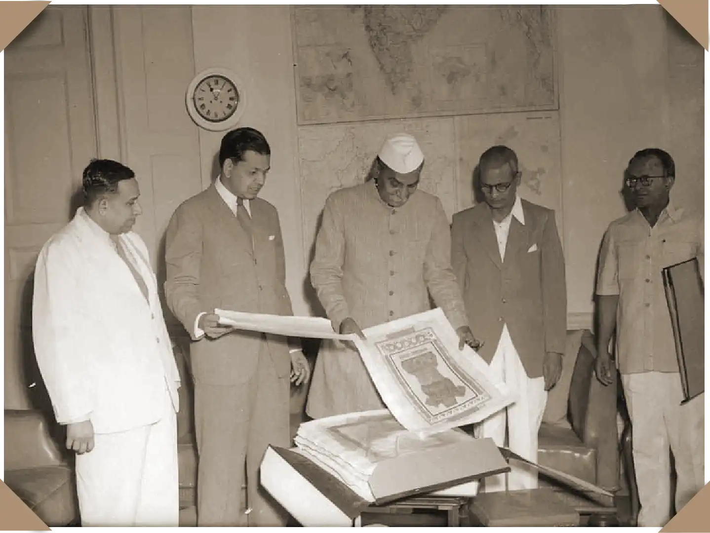 Nandalal Bose's contributions in the task of beautifying the original manuscript of the ‘Constitution of India’ and designing the emblems of Bharat Ratna and Padma Shri, the highest civilian awards from the Government of India, on the request of Jawahar Lal Nehru, the first Prime Minister of India, are monumental.
